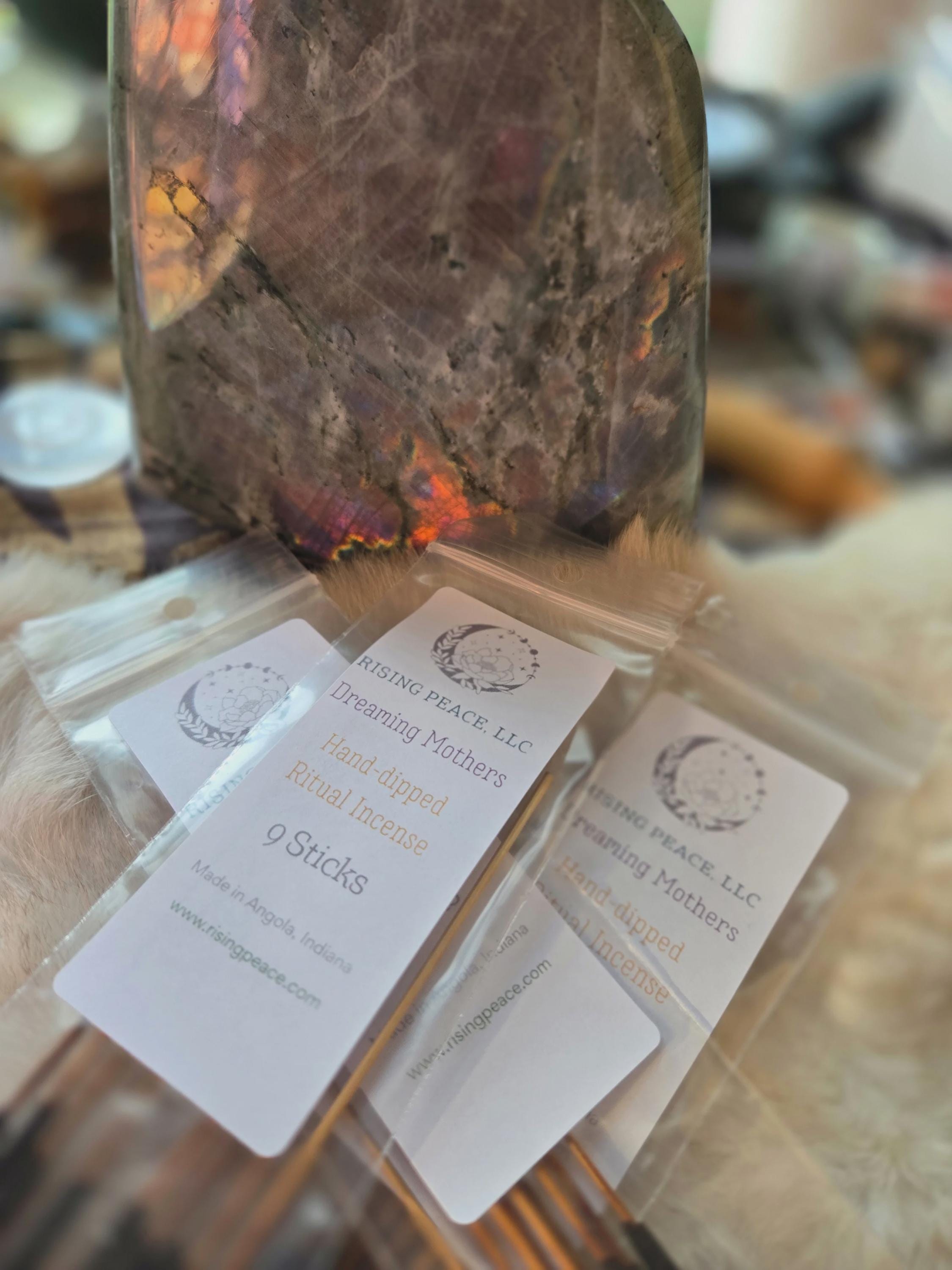 Each package contains nine sticks of Hand-dipped incense.