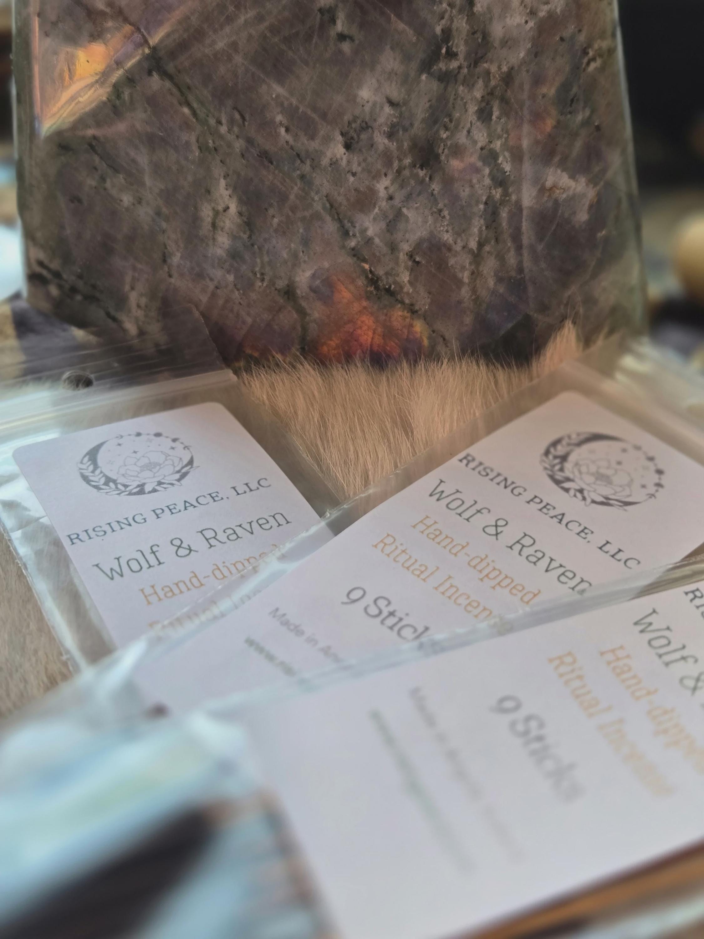 Forged in shadow and silence, Wolf & Raven is an offering to the Allfather, the one known as the Wanderer, the Seeker, the Keeper of Runes. Deeply earthen and resolutely masculine, this incense opens like a forest floor in autumn: rich with loam, cold stone, and the wisdom of fallen leaves. Resinous smoke curls like a raven’s wing, and just beneath, a whisper of blackberry lingers wild, dark, and sacred.