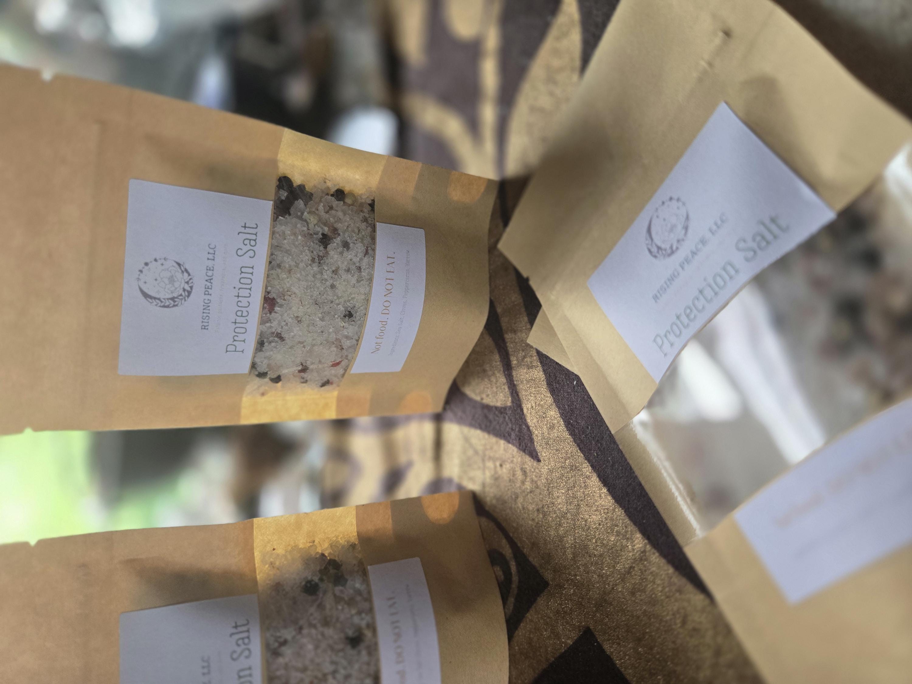 This potent protection blend weaves together coarse sea salt and luminous Himalayan salt, earth-born guardians known for their grounding and purifying power.